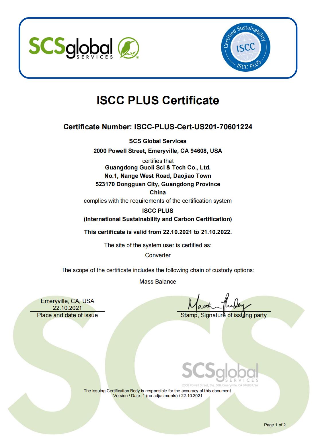自成立以來(lái),國(guó)立科技堅(jiān)持走低碳環(huán)保可持續(xù)發(fā)展之路,一直致力于低碳環(huán)保新材料及其制品的研發(fā)、生產(chǎn)和銷(xiāo)售。近日,第三方環(huán)境與可持續(xù)性認(rèn)證領(lǐng)域的領(lǐng)先機(jī)構(gòu)SCS全球服務(wù)公司(SCS Global Services)對(duì)廣東國(guó)立科技股份有限公司授予了國(guó)際可持續(xù)發(fā)展與碳(ISCC PLUS)認(rèn)證證書(shū),充分證明公司積極順應(yīng)世界低碳環(huán)保產(chǎn)業(yè)趨勢(shì),打造節(jié)能低碳環(huán)保生態(tài)產(chǎn)業(yè)鏈的決心,在可持續(xù)性和溫室氣體排放節(jié)減方面的運(yùn)行獲得了國(guó)際權(quán)威第三方機(jī)構(gòu)的認(rèn)可。